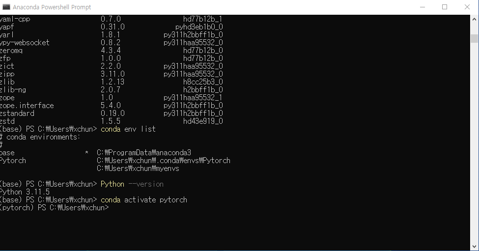 버전이 3.8이상이 아니라면 또는 PyTorch환경을 따로 관리하고자 한다면 아나콘다의 가상환경을 이용하는 것이 좋습니다.